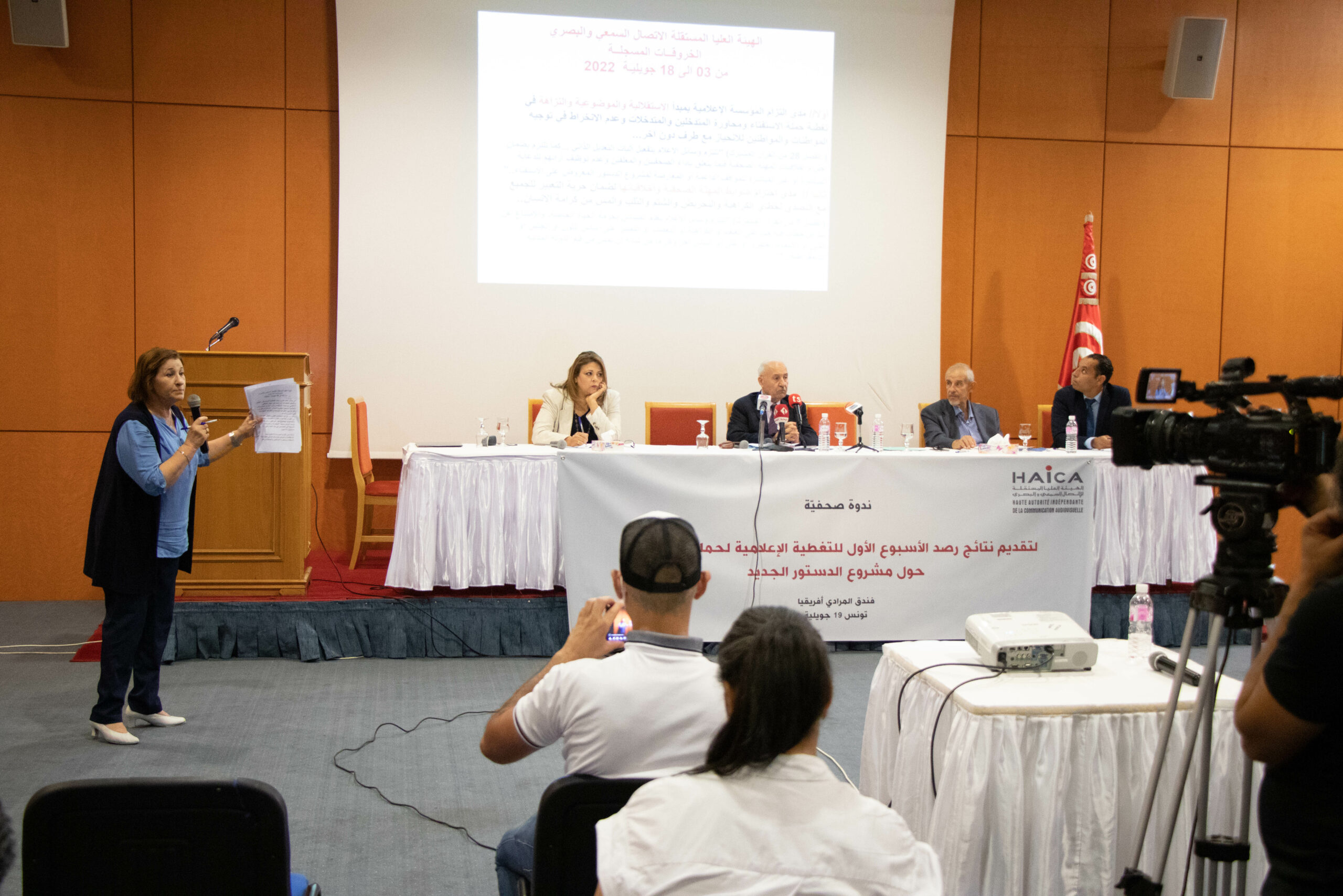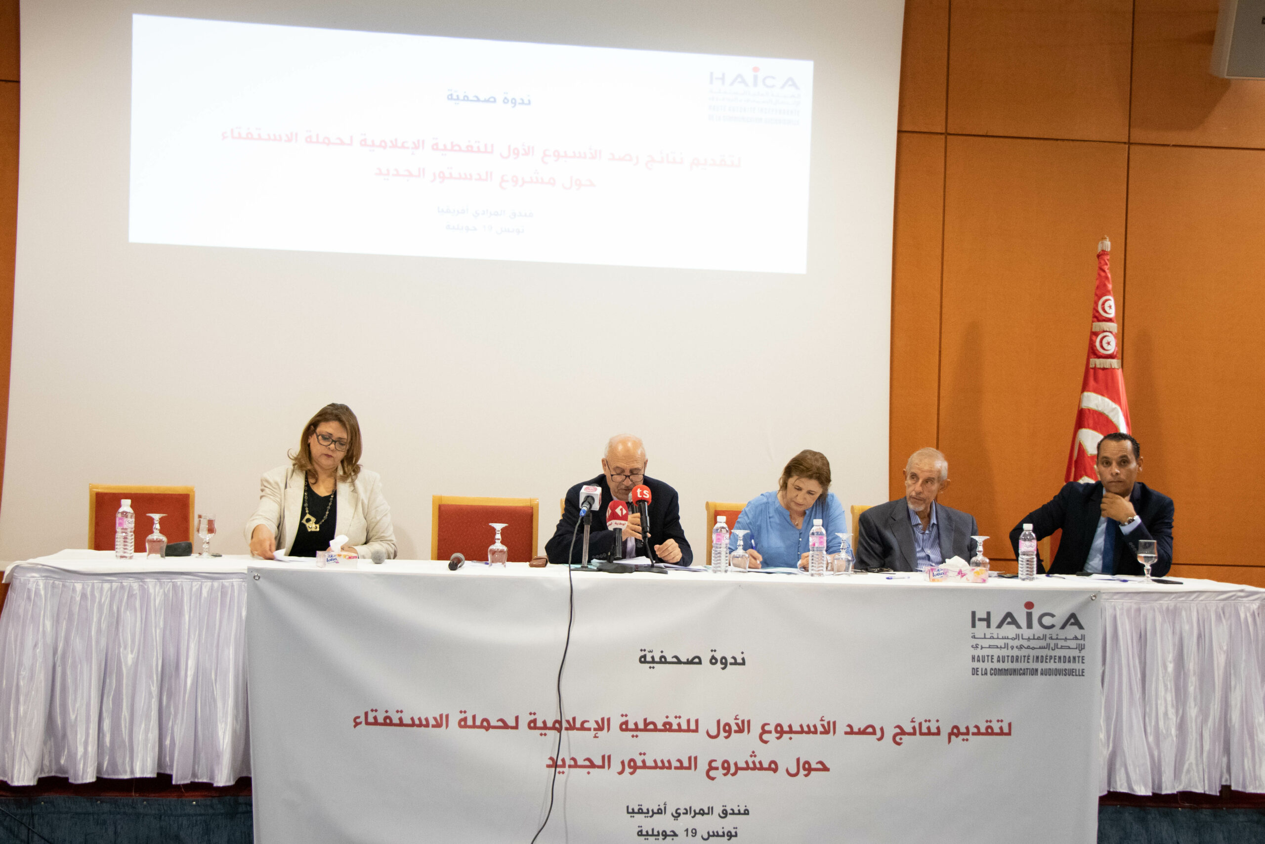 نظمت الهيئة العليا المستقلة للاتصال السمعي والبصري يوم الثلاثاء 19 جويلية 2022، ندوة صحفية قدمت خلالها اهم نتائج تقرير رصد الأسبوع الأول للتغطية الاعلامية لحملة الاستفتاء حول مشروع الدستور الجديد وذلك بحضور ممثلي وسائل الاعلام والصحافيين.