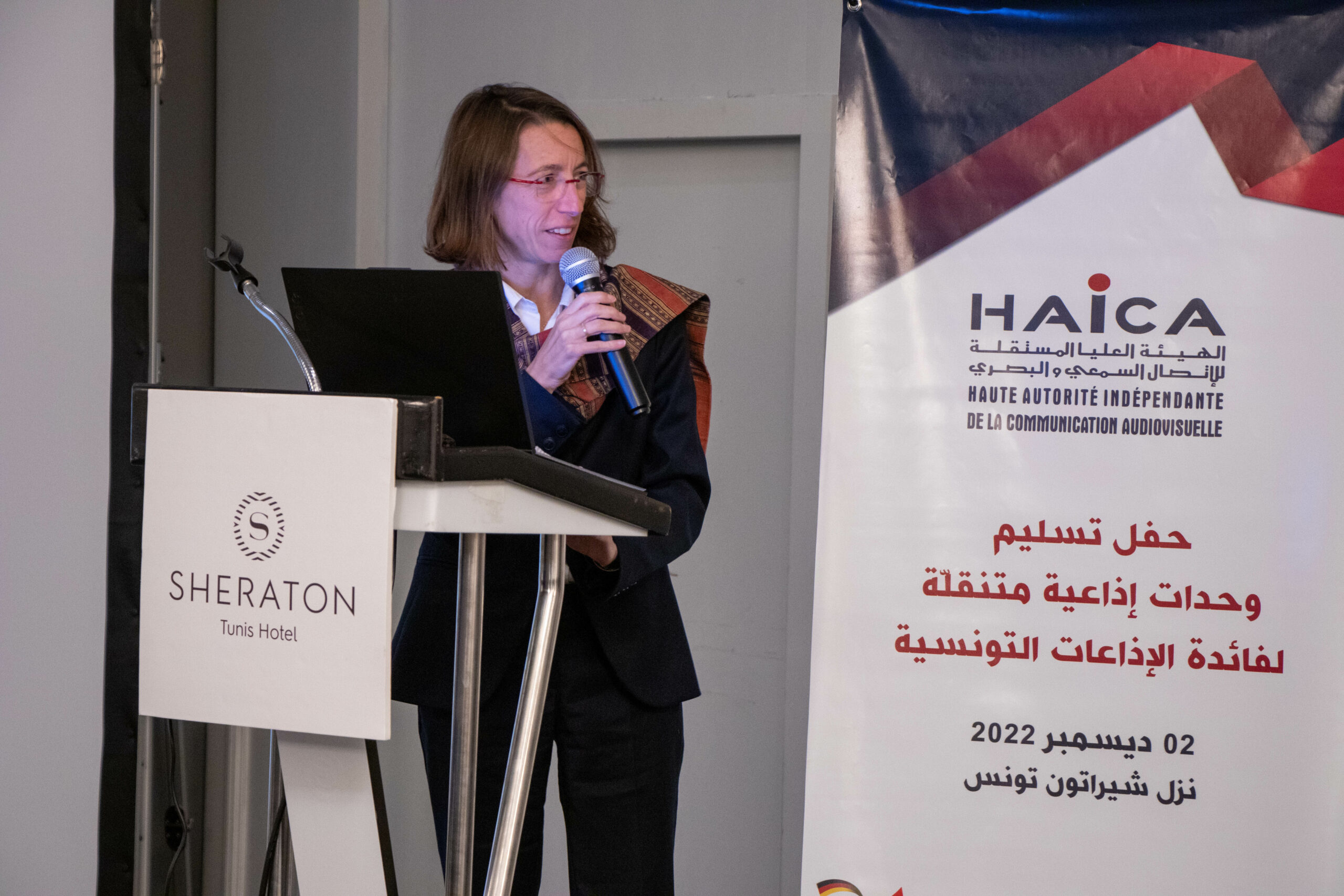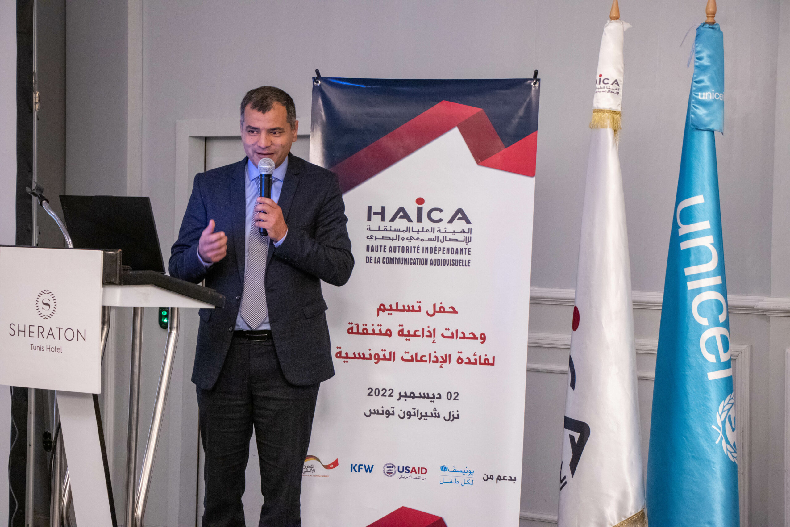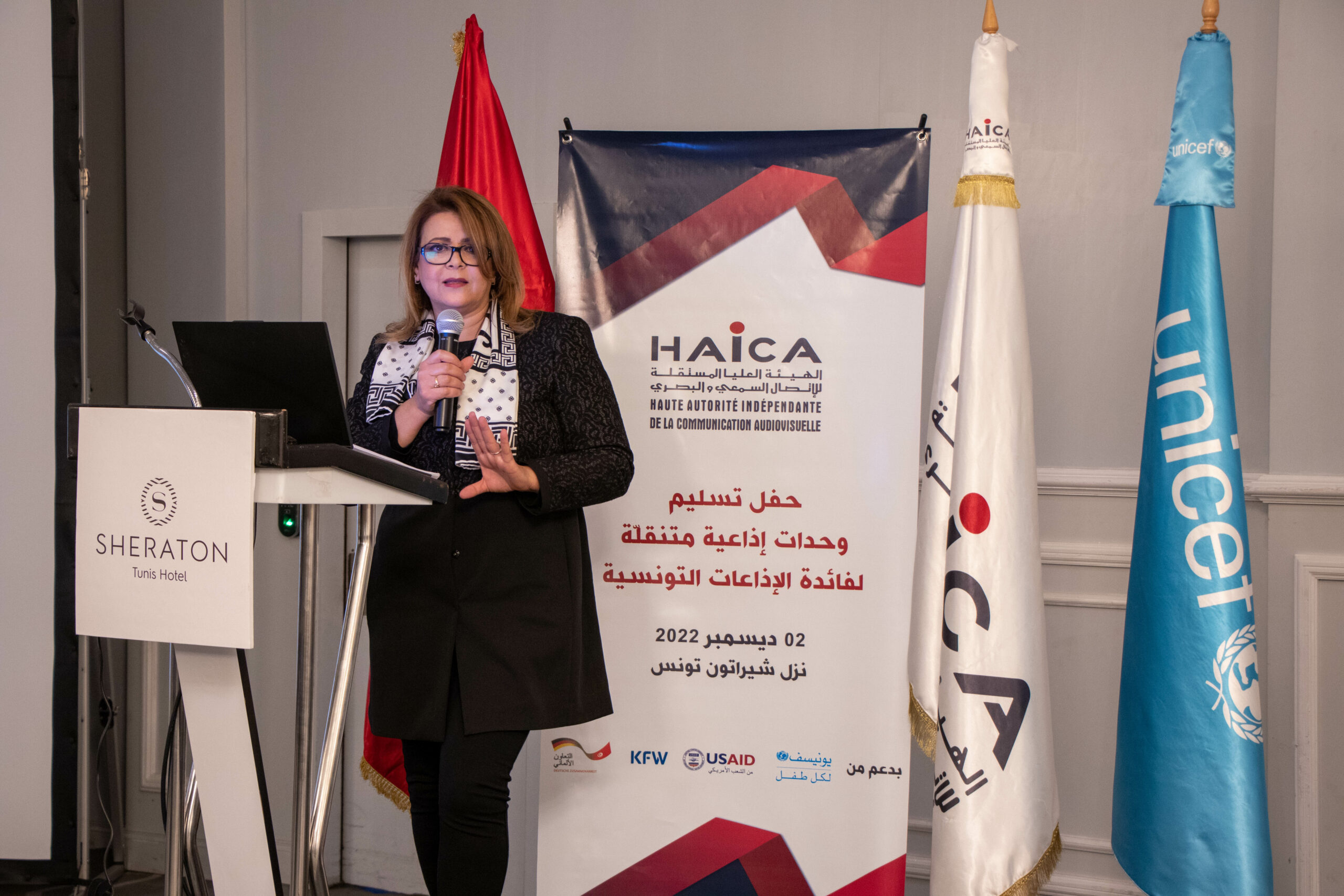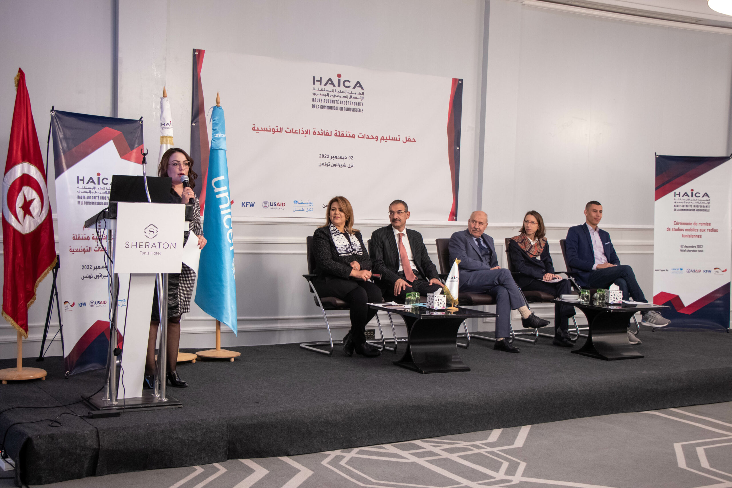 نظمت الهيئة العليا المستقلة للاتصال السمعي والبصري، يوم 02 ديسمبر 2022، حفل تسليم لثلاث وحدات إذاعية متنقلة لفائدة الإذاعات التونسية، وذلك في إطار مشروع الهيئة مع منظمة الأمم المتحدة للطفولة اليونيسيف من أجل دعم الإذاعات التونسية ما بعد الأزمة الصحية كورونا.