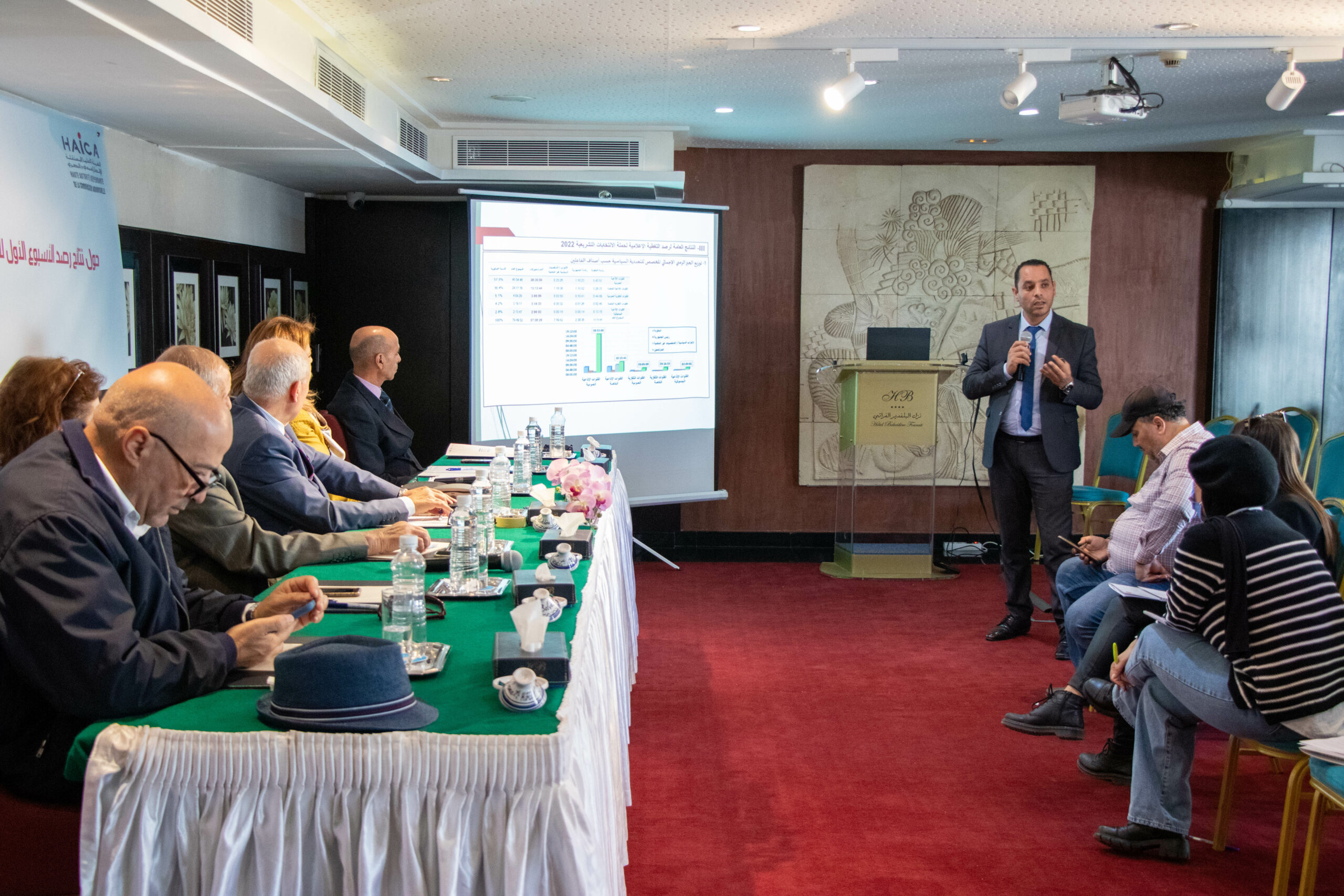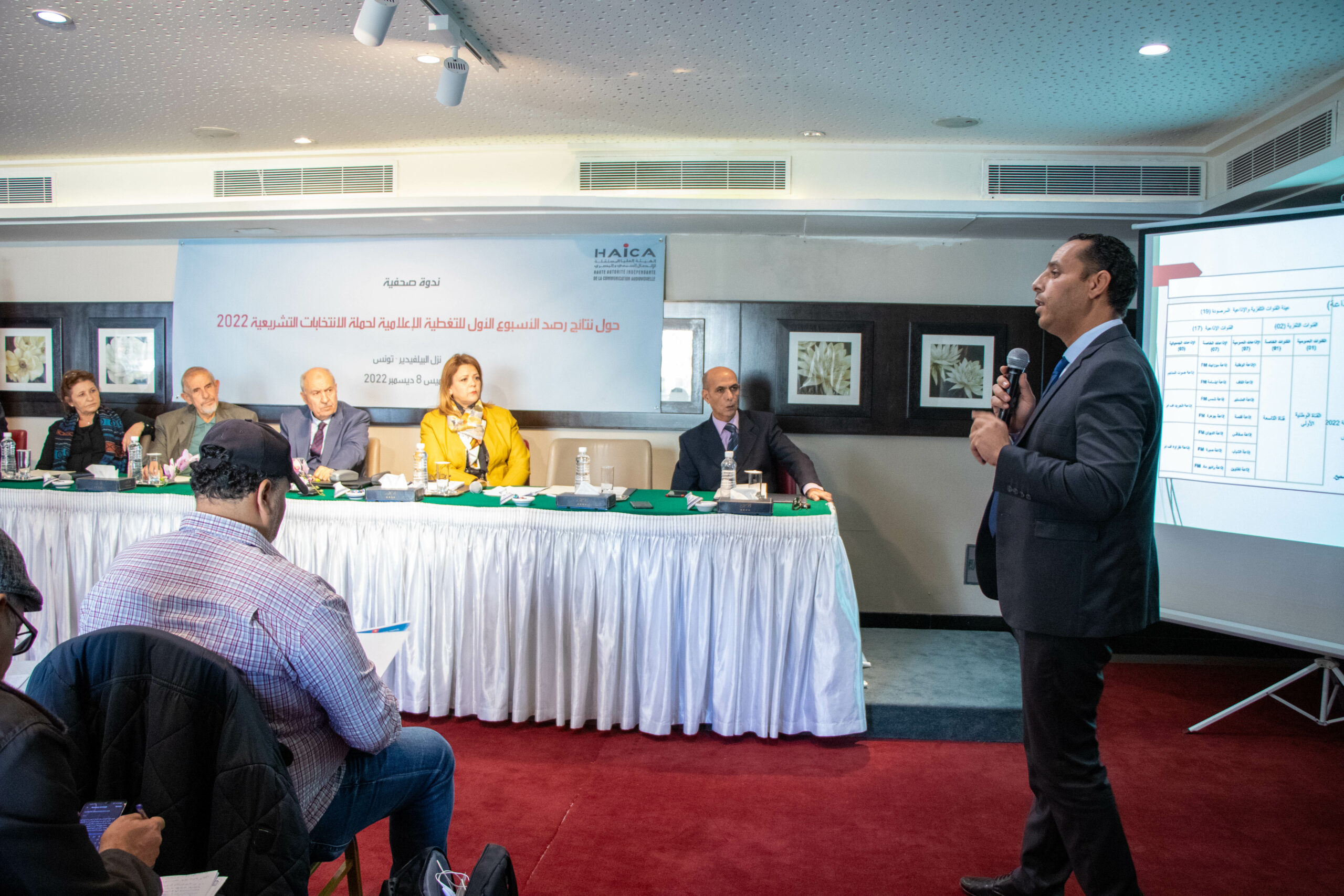 قدم تقرير رصد التغطية الإعلامية لحملة الانتخابات التشريعية خلال الأسبوع الأول من 25 نوفمبر الى 01 ديسمبر 2022 السيد نجيل الهاني المسؤول عن وحدة الرصد بالهيئة بحضور كافة أعضاء وعضوات مجلس الهيئة الذين تولوا الإجابة عن استفسارات السيدات والسادة الصحافيين والصحافيات