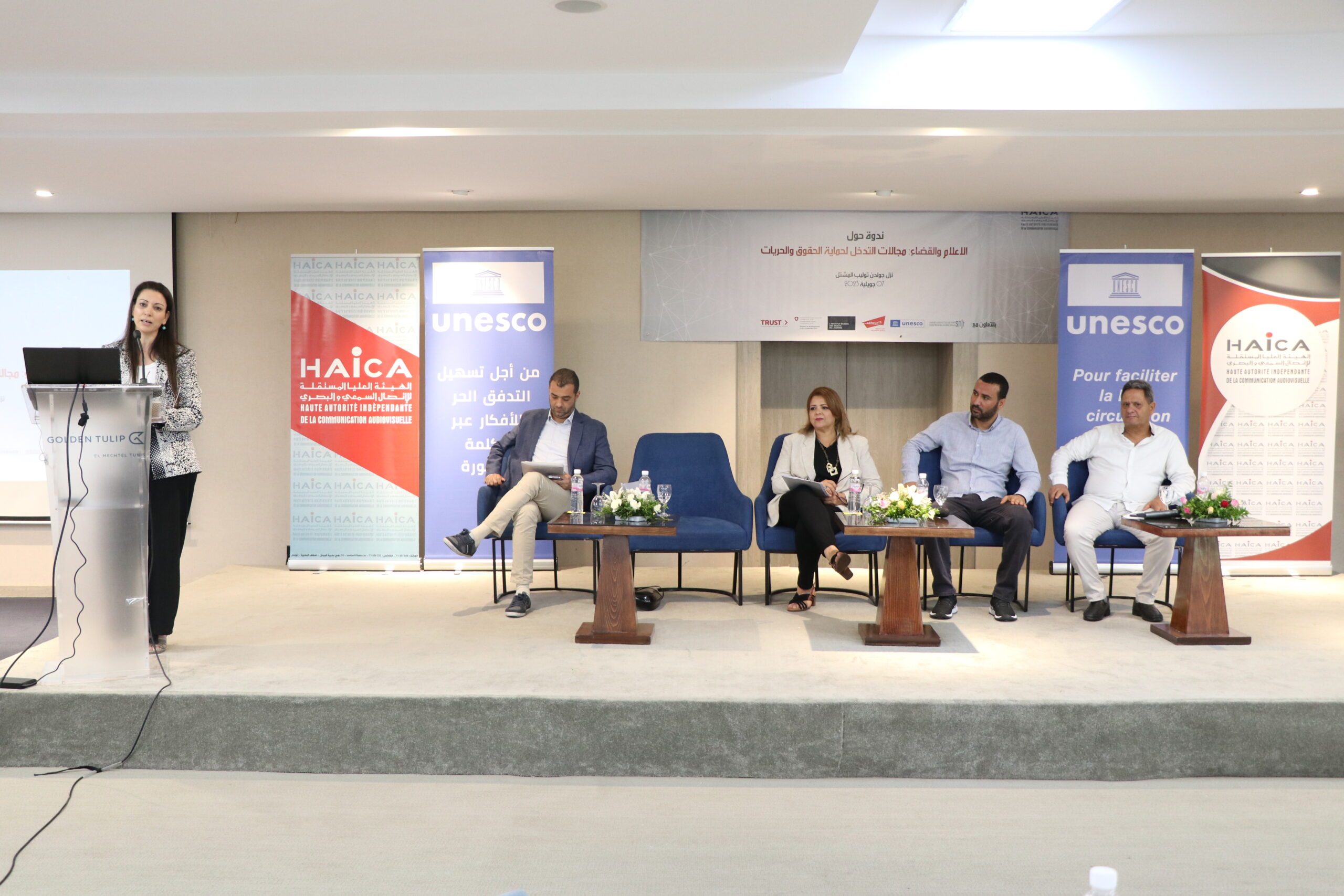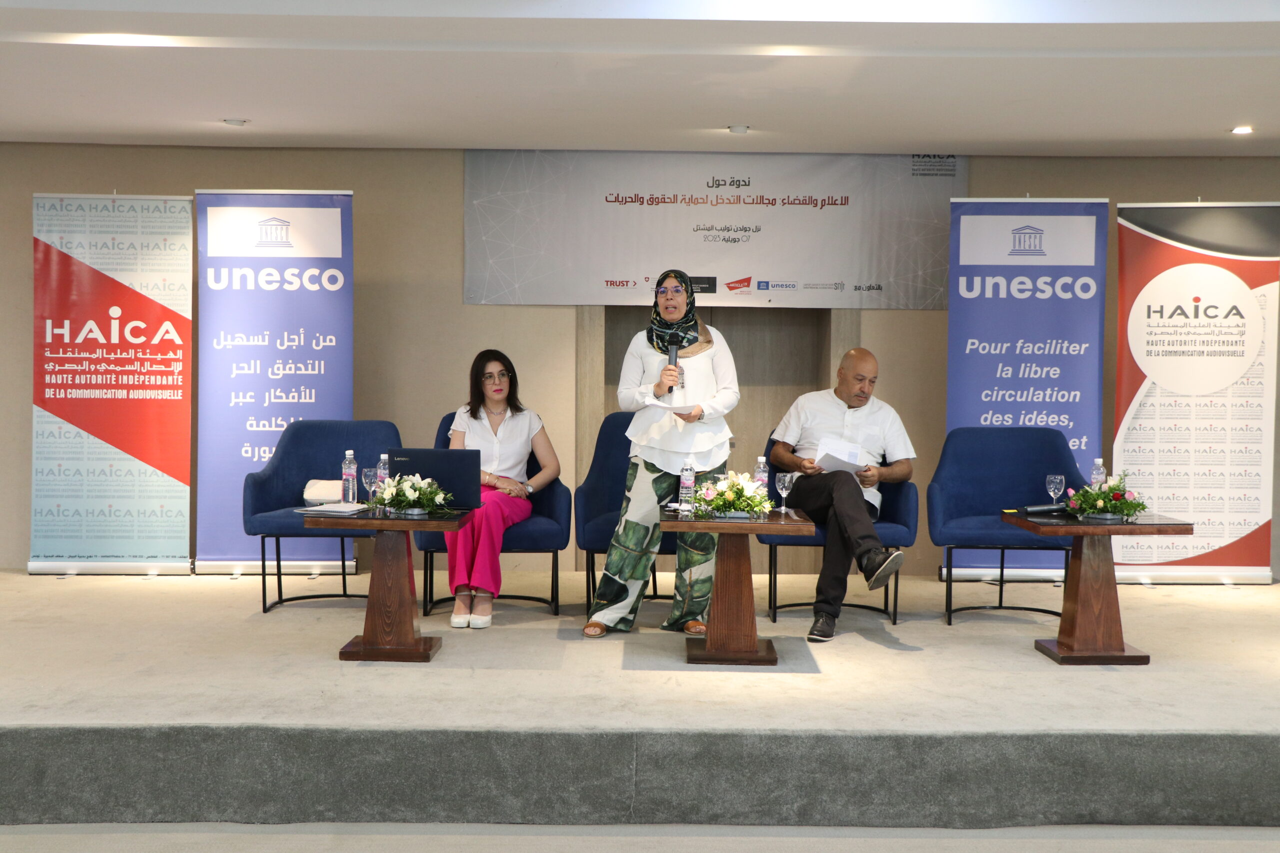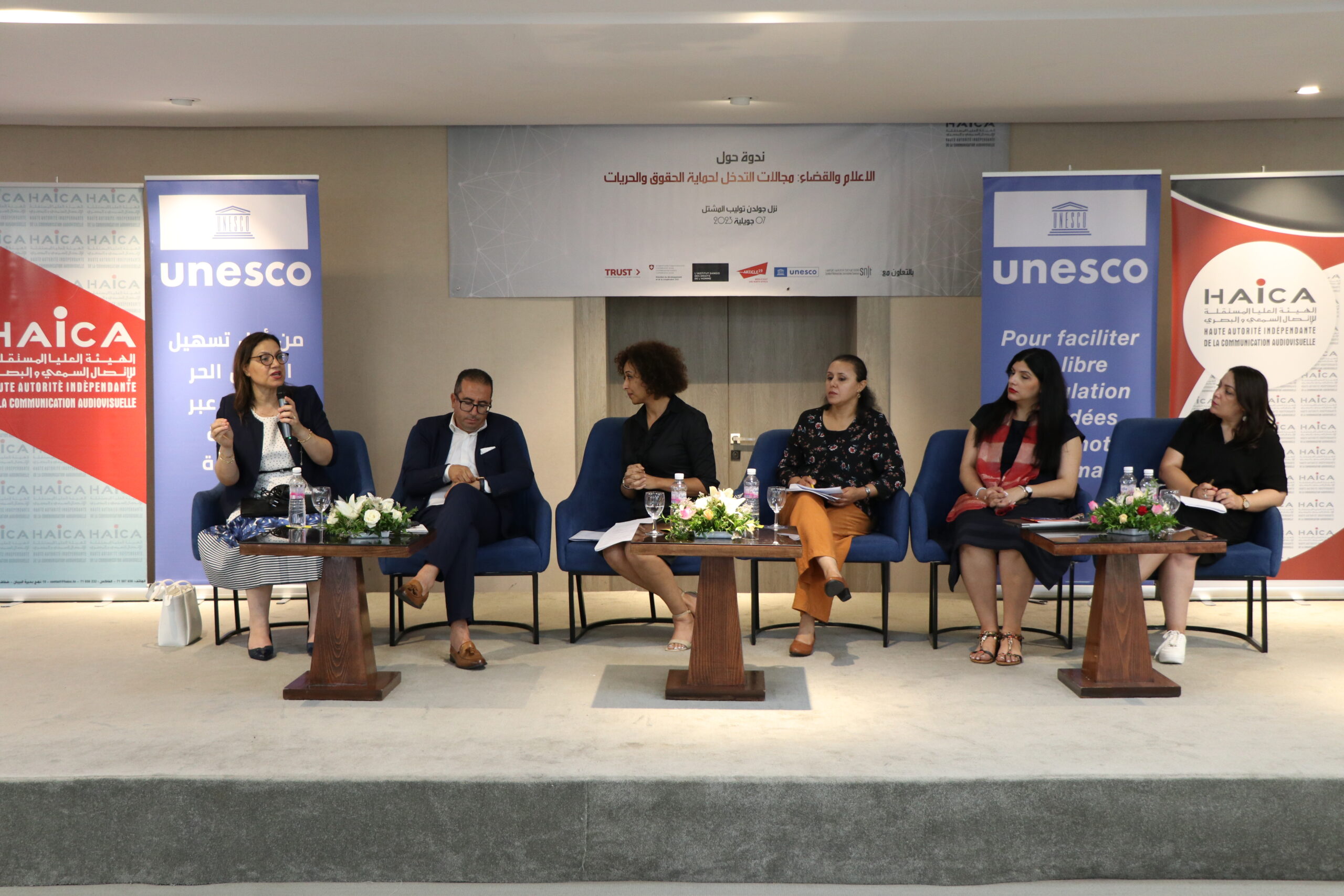 نظمت الهيئة العليا المستقلة للاتصال السمعي والبصري يوم الجمعة 07 جويلية 2023 ندوة حول “الإعلام والقضاء، مجالات التدخل لحماية الحقوق والحريات” بالشراكة مع منظمة الأمم المتحدة للتربية والعلم “اليونسكو” ومنظمة المادة 19 والمعهد الدنماركي لحقوق الإنسان والنقابة الوطنية للصحفيين التونسيين، وذلك بحضور ومشاركة خبراء ومختصين في الإعلام والقانون وقضاة وممثلين عن المؤسسات القضائية المختصة وممثلين عن الهياكل المهنية والصحفيين ومنظمات المجتمع المدني.