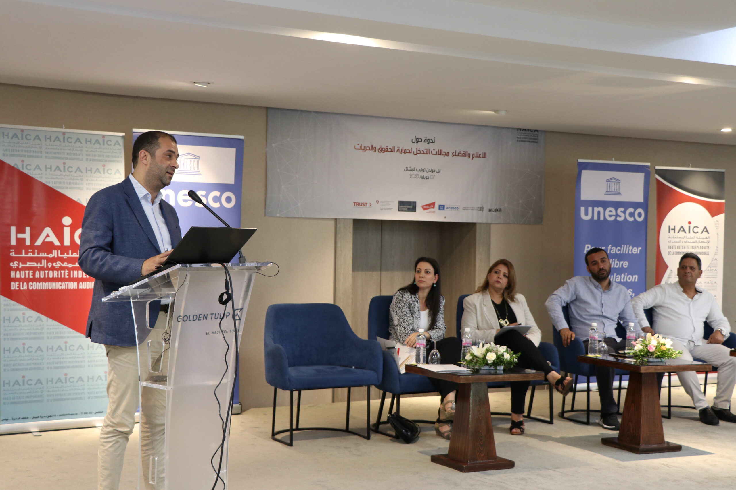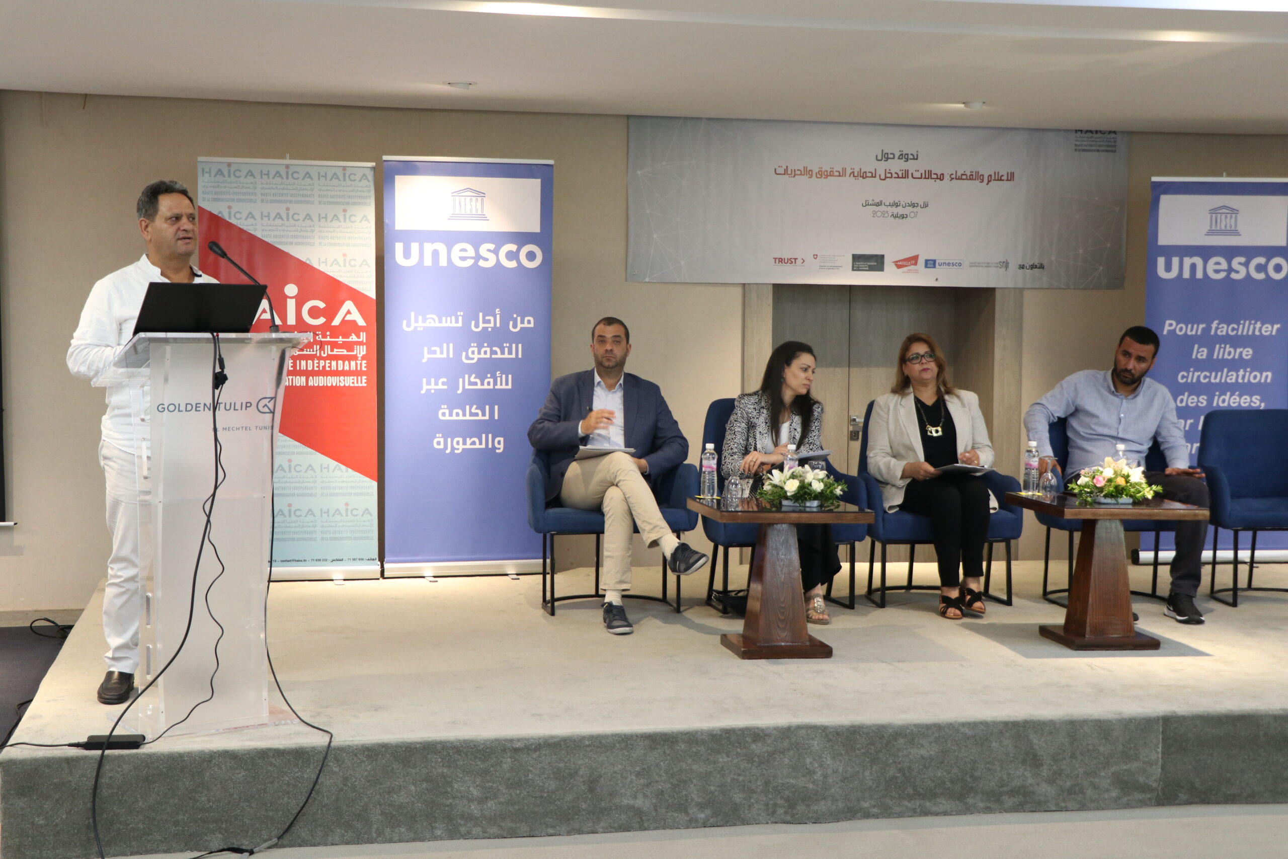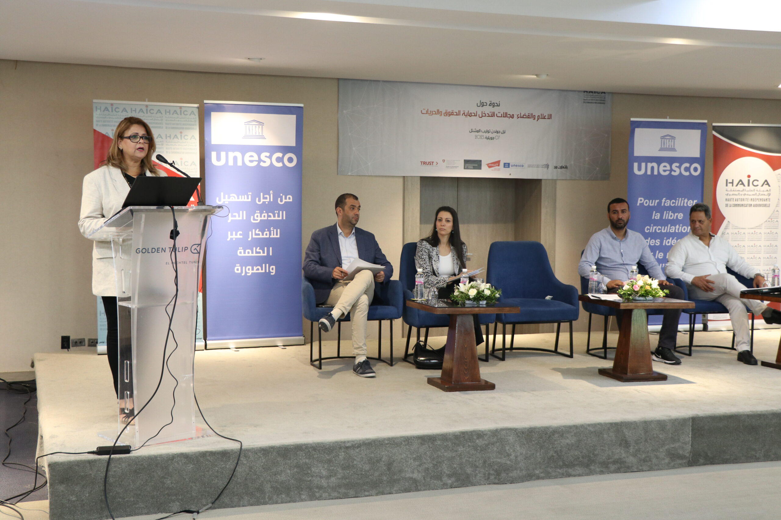 نظمت الهيئة العليا المستقلة للاتصال السمعي والبصري يوم الجمعة 07 جويلية 2023 ندوة حول “الإعلام والقضاء، مجالات التدخل لحماية الحقوق والحريات” بالشراكة مع منظمة الأمم المتحدة للتربية والعلم “اليونسكو” ومنظمة المادة 19 والمعهد الدنماركي لحقوق الإنسان والنقابة الوطنية للصحفيين التونسيين، وذلك بحضور ومشاركة خبراء ومختصين في الإعلام والقانون وقضاة وممثلين عن المؤسسات القضائية المختصة وممثلين عن الهياكل المهنية والصحفيين ومنظمات المجتمع المدني.