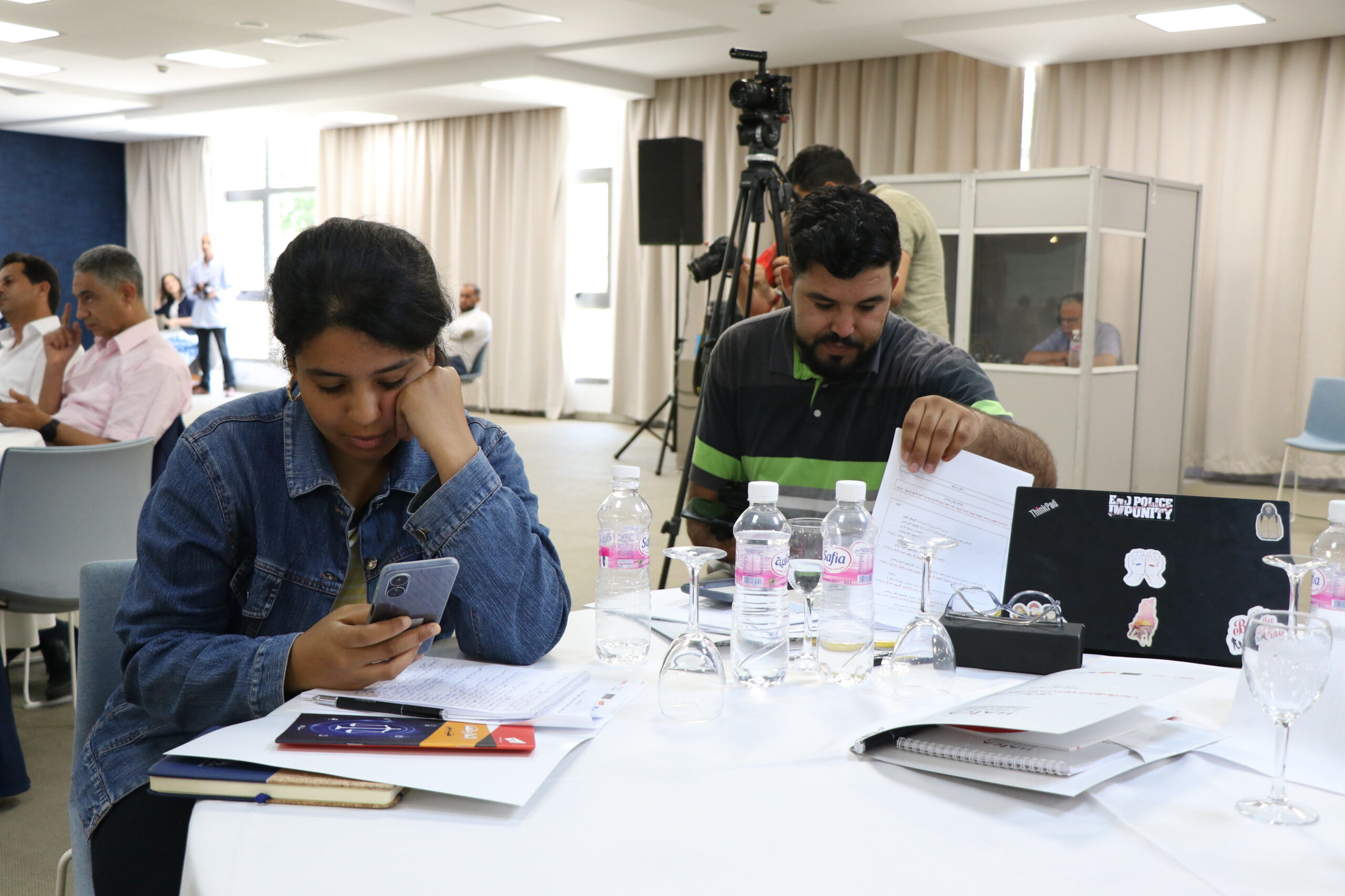 وأشار رئيس نقابة الصحفيين التونسيين محمد ياسين الجلاصي إلى أن هذه الندوة تأتي في سياق دقيق أمام العودة إلى الرقابة المسبقة على المحتوى الإعلامي وما يتعرض له الصحافيين والإعلاميين من محاكمات على معنى المرسوم عدد 54 والمنشور عدد 19 وأمام تقلص ضمانات حرية التعبير والصحافة، كما دعا إلى ضرورة إلغاء المرسوم المذكور والدفاع عن استقلالية وسائل الإعلام وإعادة الاعتبار للهيئة العليا المستقلة للاتصال السمعي والبصري، مؤكدا ضرورة أن يكون القضاء دعامة من دعائم ضمان الحقوق والحريات ودعم حرية الصحافة والتعبير وليس أداة للتضييق على الحريات.