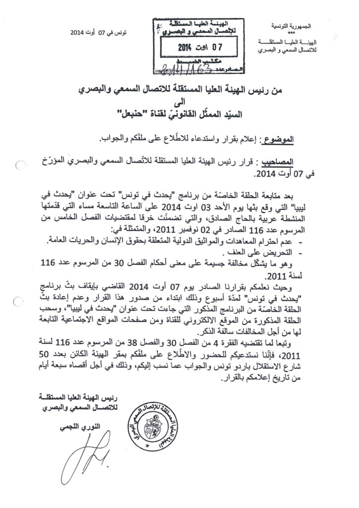 الهيئة تقرر إيقاف بث وإعادة بث برنامج “يحدث في تونس”